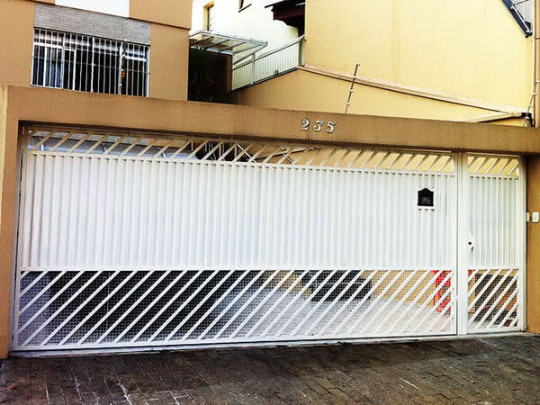 Nos portões deslizantes suas folhas correm em trilhos fixados no chão e a abertura é feita para um dos lados da garagem. Em dimensões médias, esse portão deslizante não precisa de viga superior, o que deixa o vão da garagem sem limitação de altura para entrada de veículos.